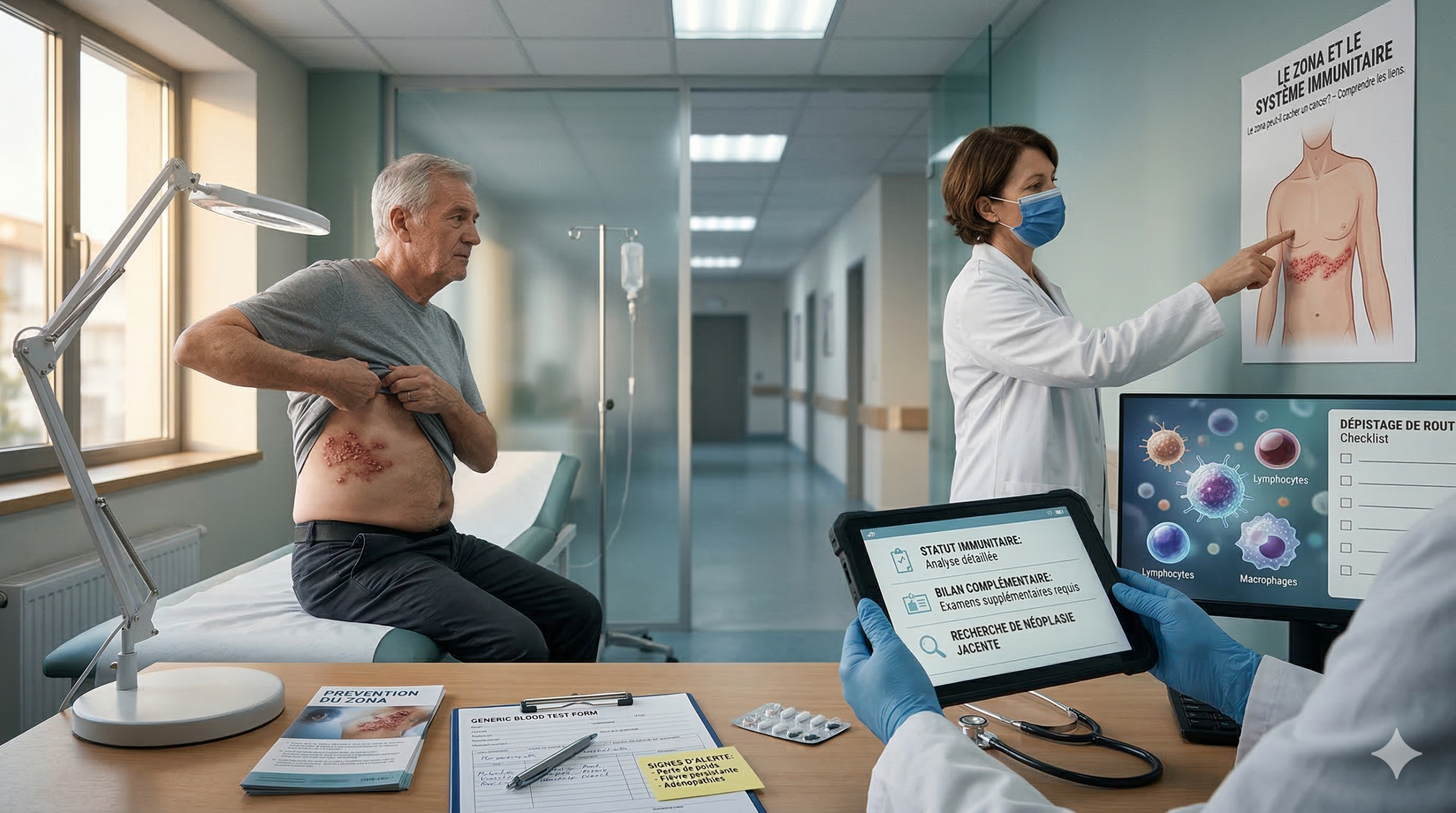 À retenir : le zona peut survenir avant la découverte d’un cancer, non parce qu’il l’annonce, mais parce que l’immunité est déjà en train de fléchir. Ce n’est pas un diagnostic, c’est un signal possible.