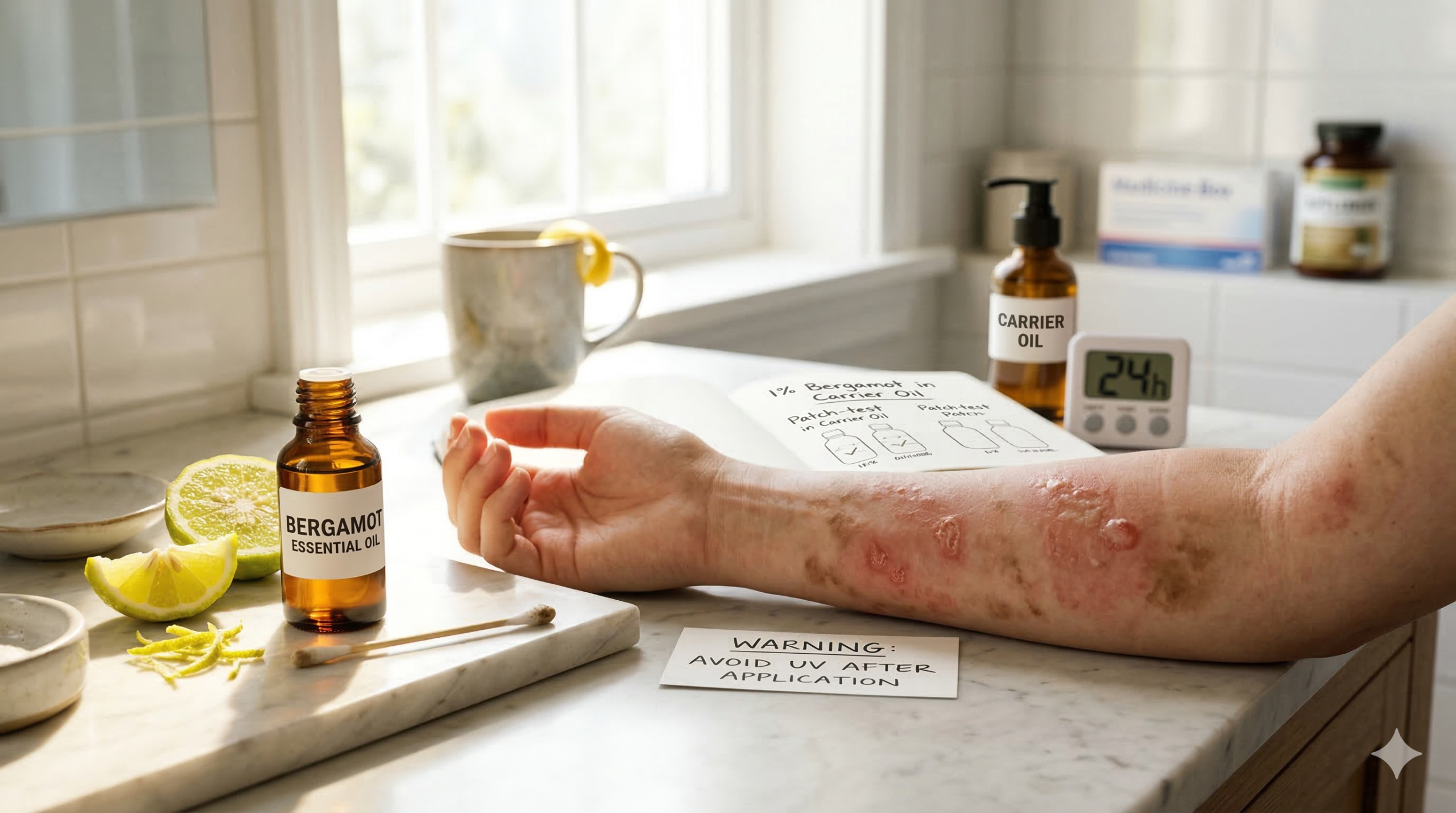 La particularité dangereuse : les réactions peuvent survenir plusieurs heures après l’application. On ne fait pas toujours le lien avec la bergamote. Le risque est majoré pour les peaux claires, les enfants et les peaux déjà fragilisées.