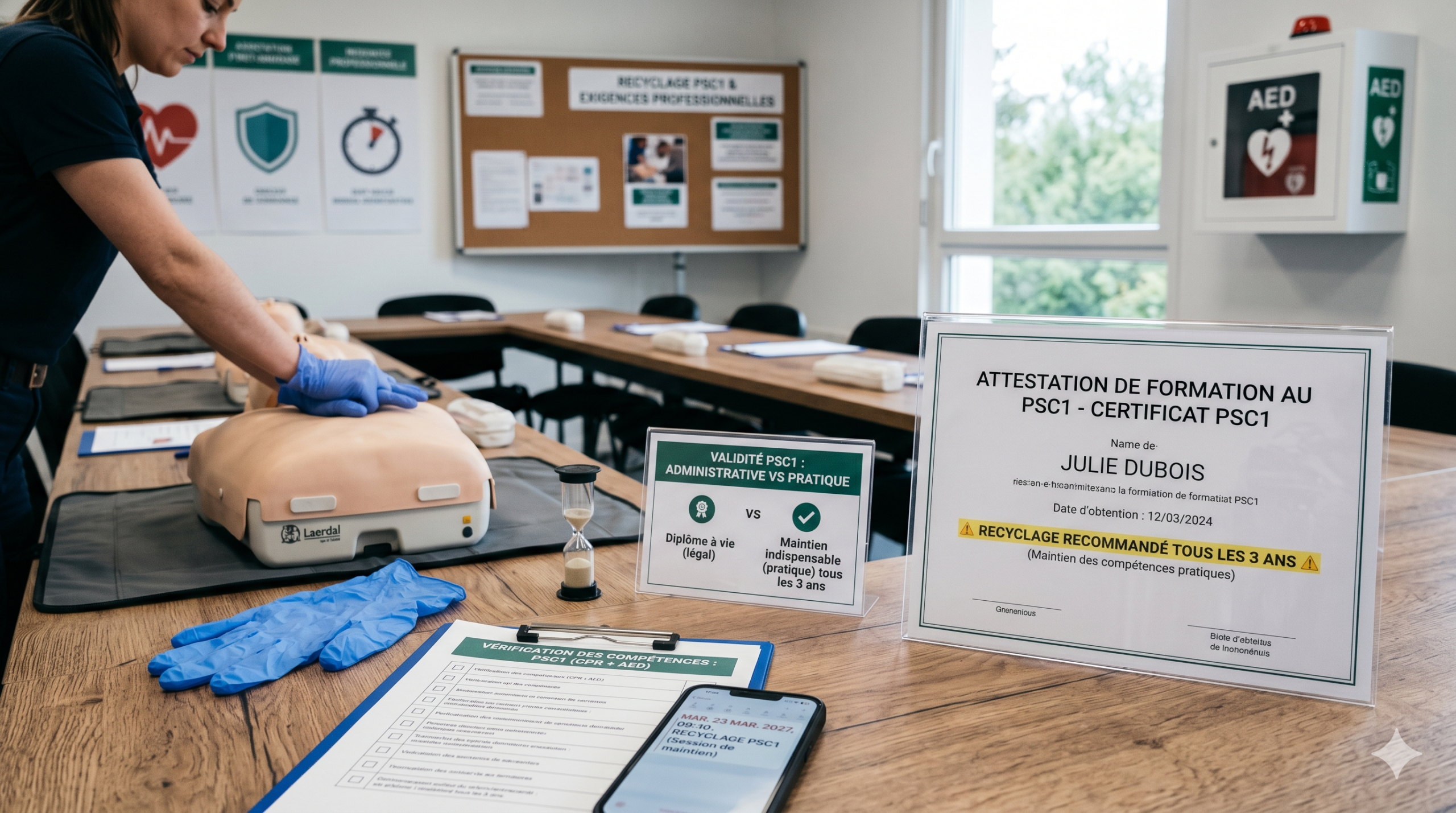 Le PSC1 n’a pas de date d’expiration légale stricte — mais cela ne signifie pas que votre certificat reste indéfiniment valable sur le plan des compétences réelles. Voilà la réponse courte, franche, et utile à retenir avant tout.