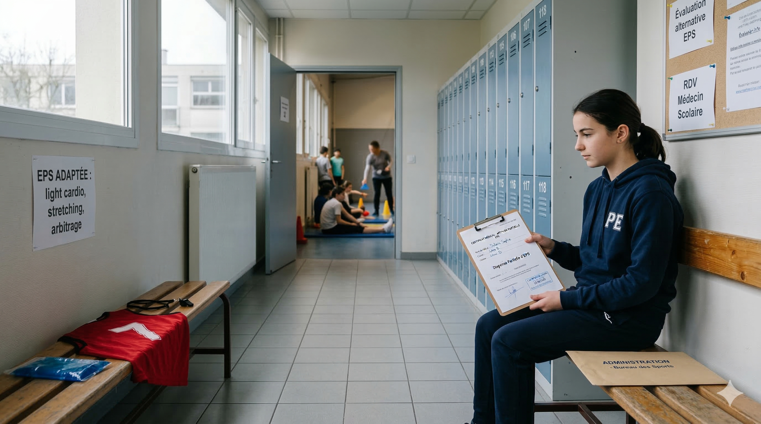 Dans ce cas uniquement, l’établissement peut décider une dispense administrative du cours. Des activités pédagogiques alternatives peuvent alors être proposées : analyse de séquences sportives, travail sur la santé et le corps, projets en lien avec l’EPS.